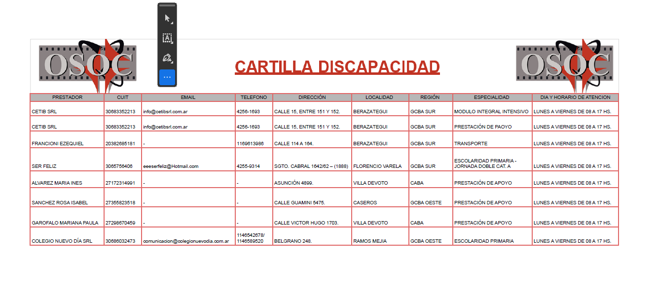 ● Correo electrónico: discapacidad@osoc.com.arContacto con Equipo Interdisciplinario: